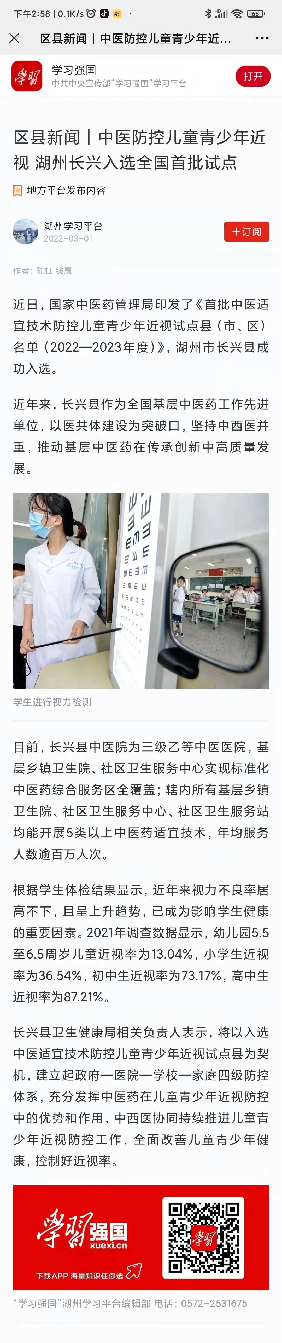 儿童青少年近视防控中的优势和作用