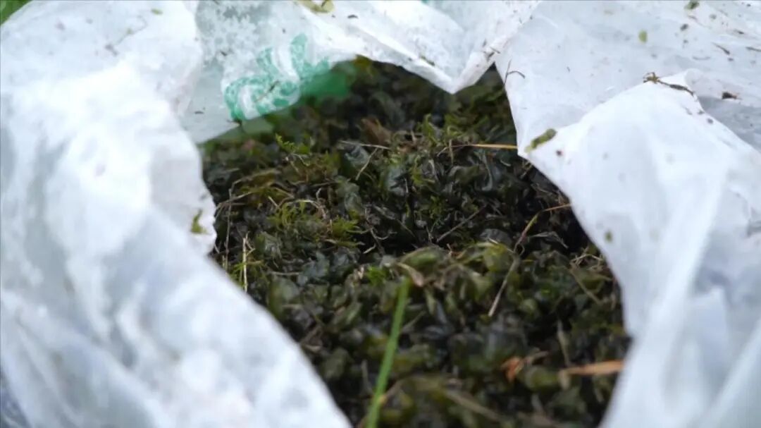 路边已经聚集不少“嬢嬢”,只见她们轻轻翻开湿润的落叶和杂草,仔细寻找着藏匿其中的美食——地衣。